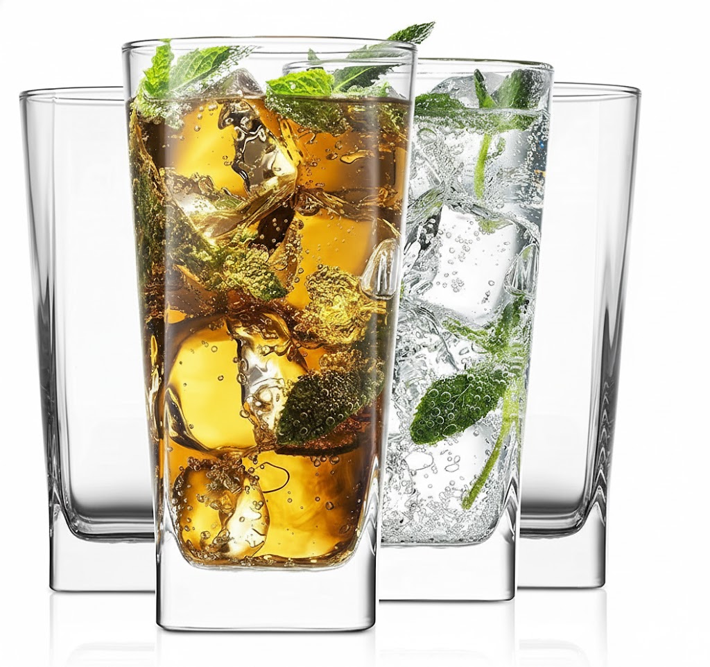 أكواب شرب طويلة للماء، العصير، المشروبات الباردة، الموهيتو، الكوكتيلات، خالية من الرصاص، مثالية للمنازل والمطاعم والحفلات