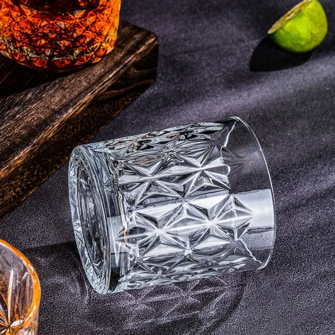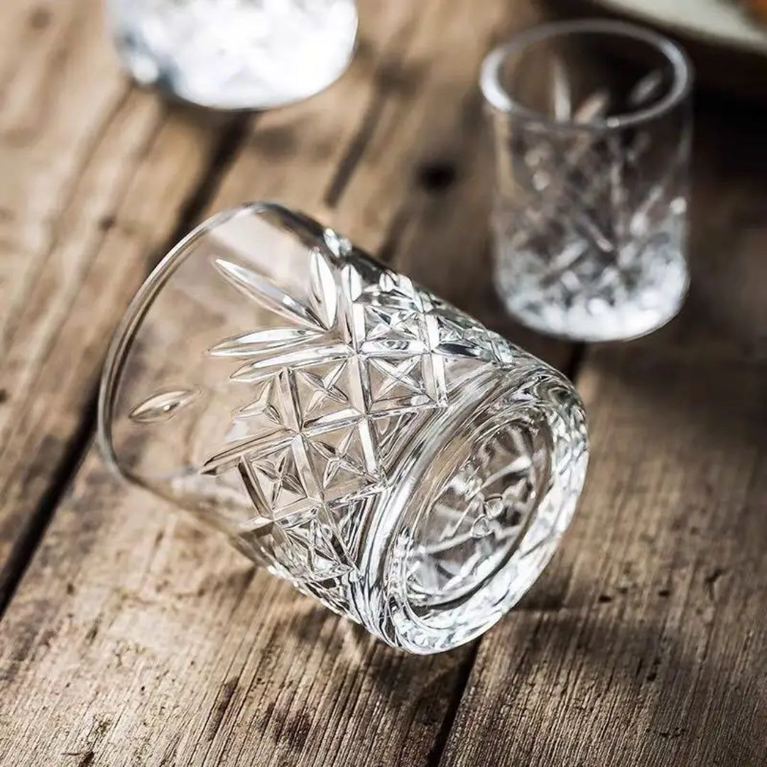 “The Old Glass” Set of 6 Deli Glass Engraved Clear Glasses, 320ml, is a short and wide glass. It features a classic, elegant design with crystal-like embossed patterns and decorations.
